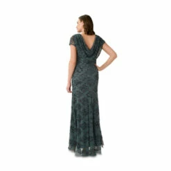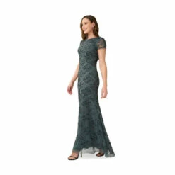 Made to celebrate, our long gown boasts stunning allover handsewn beadwork that dance atop the soft mesh overlay. Sheer illusion short sleeves and no waist seam for a flattering fit. Designed to gently skim the bodice and eases to a floor-length mermaid skirt.