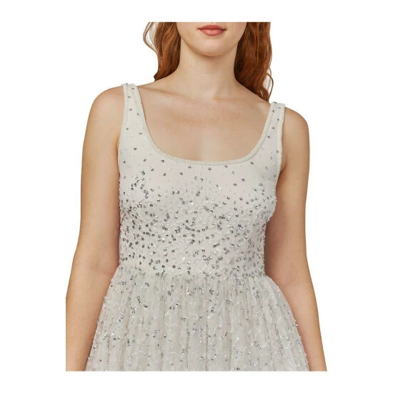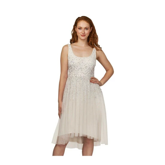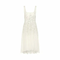 This ballerina style dress, with a fit and flare design is a perfect addition to your wardrobe for that special occasion. Featuring a mesh waterfall skirt, and scattered sequins, team with statement block heels and bold clutch to complete your look.