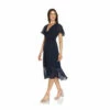 53% Polyester, 47% Metallic. Machine. Model wears a Size 8.