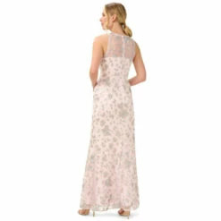 Beautiful and modern, our floor-sweeping sleeveless gown is designed with delicate floral embroidery and handsewn sequined embellishments. We love the cutaway halter neckline and sheer illusion yoke. Details: a seamed waist tops the long skirt with delicate pleating for added sway. You’ll make a striking entrance in this gorgeous style at wedding receptions and black-tie galas.