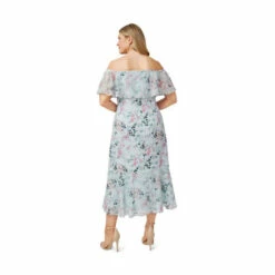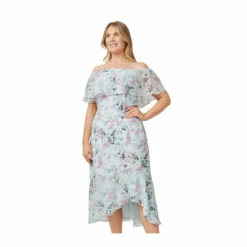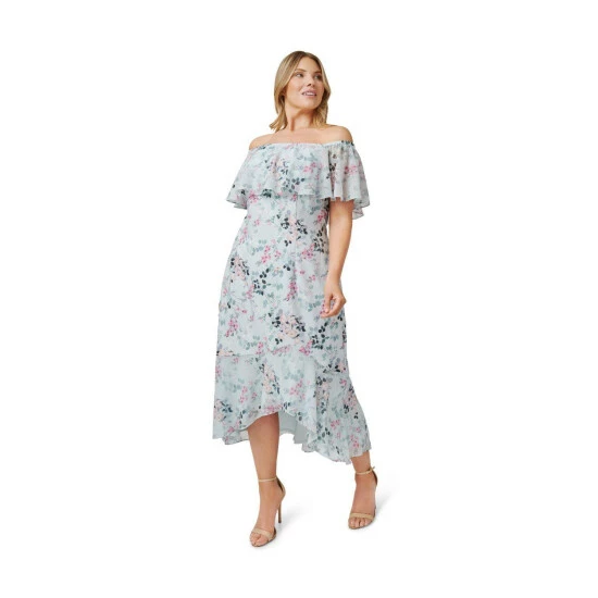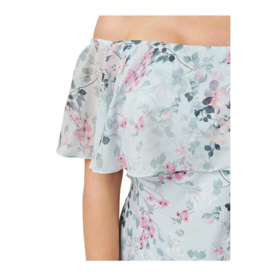 Feminine and chic: a streamlined design crafted from a stretch woven twill fabric that gets its shape from the off-the-shoulder popover neckline and a floaty chiffon high/low flounce hem. We love the trend-right floral print that blooms allover. Perfect for brunch, date nights, bridal showers and wedding receptions.