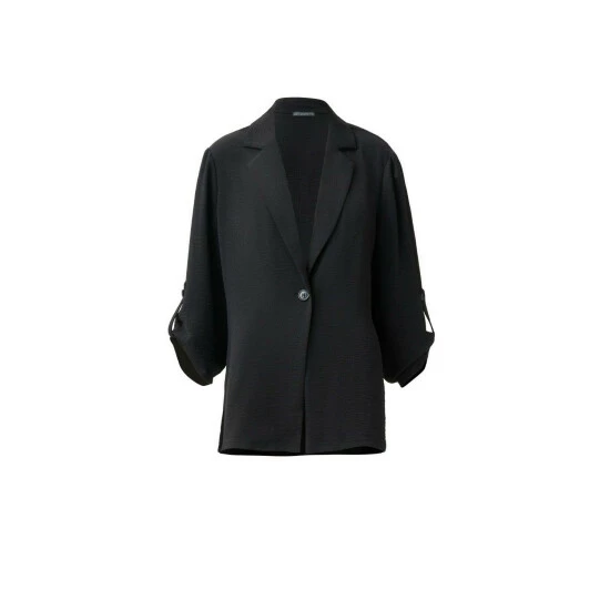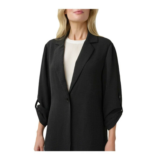Classic and easy-to-layer, our relaxed-fit blazer is fashioned from a versatile woven satin fabric. Featuring a single-button front closure, notched lapels and elbow-length roll-up sleeves with button tab detail. This no-fuss style is perfect to wear any day of the week.