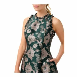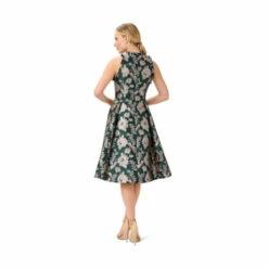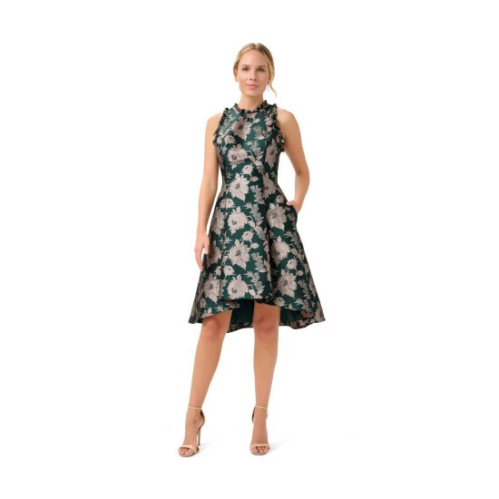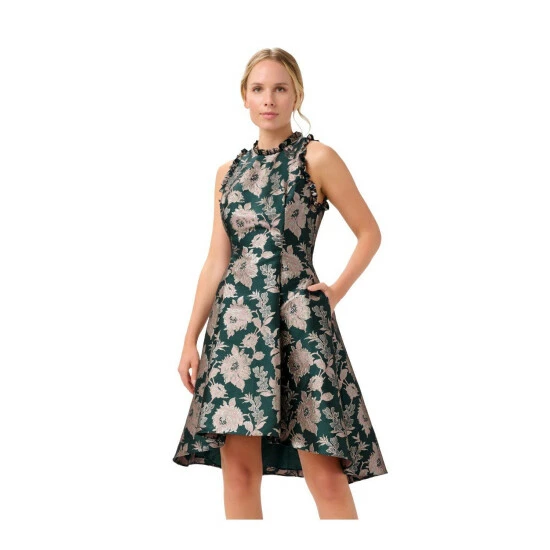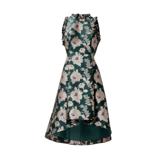 87% Polyester, 13% Metallic. Dry Clean. Model wears a Size 8.
