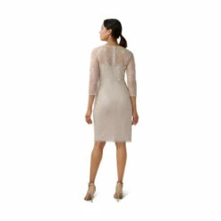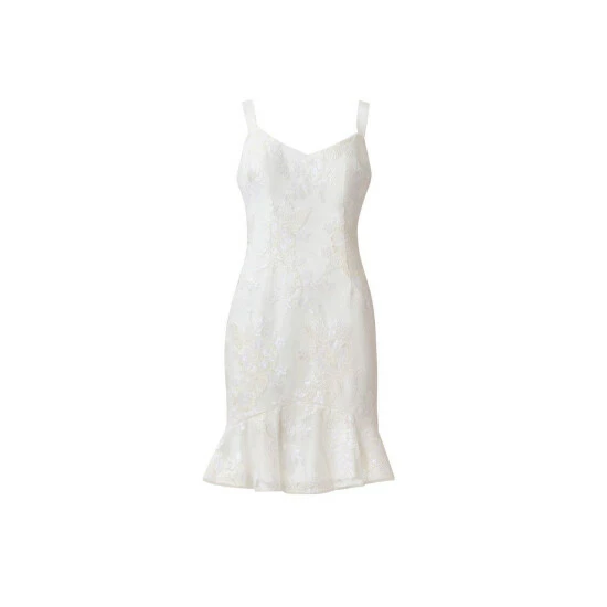 Make it a night to remember in our short cocktail dress designed with blooms of floral embroidery and hints of sequins on mesh fabric. Grosgrain ribbon shoulder straps top the flattering no waist seam silhouette and flounce hem. Sweetheart neckline. Sleek back zip closure.