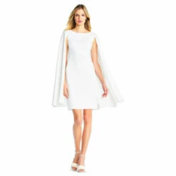 Elegant and effortlessly trendy, this cape cocktail dress will keep you looking fabulous all day and night. This chic cocktail dress features a fitted silhouette, a fashion-forward cape, and a subtle back zip closure, creating a striking look for your next party. Crafted from crepe fabric, this party dress is extremely comfortable. Pair this gorgeous cape dress with a bold, red lip and sparkling earrings for a one-of-a-kind look designed to stand out.