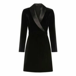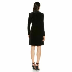 Adrianna Papell’s glam velvet wrap-style dress is a modern look with satin trim and a tuxedo-inspired silhouette. This dress is perfect for many different occasions like work, dinners, parties or any Christmas event.